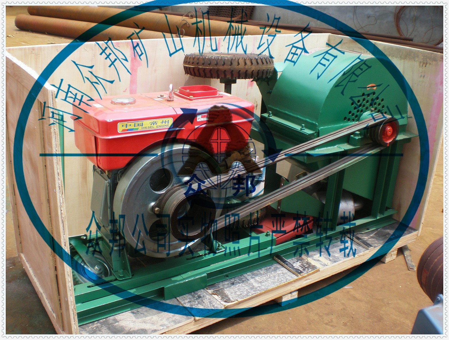 出口3臺(tái)馬來西亞柴油機(jī)動(dòng)力木材粉碎機(jī)